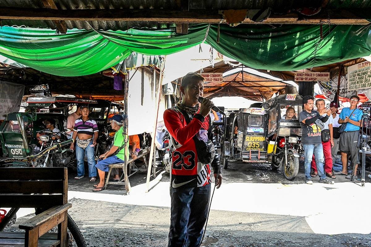 In a hardscrabble district of Manila, kids and younger adults collect exterior a small retailer the place the karaoke machine is in excessive demand.