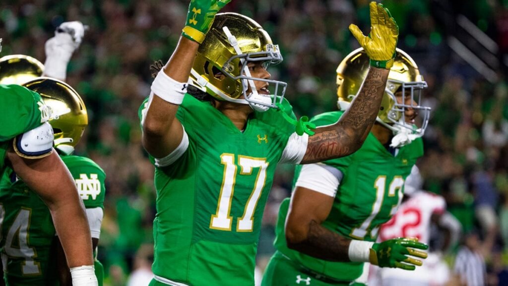 If you wish to perceive how precisely Flores has made that occur, think about the depth of his reply when requested to interrupt down his pinballing catch in site visitors towards Duke. Earlier than Sam Hartman’s mad sprint on fourth-and-16, earlier than Audric Estime’s 30-yard run for the profitable rating, there was Flores outmaneuvering an skilled secondary together with his thoughts and his savvy.