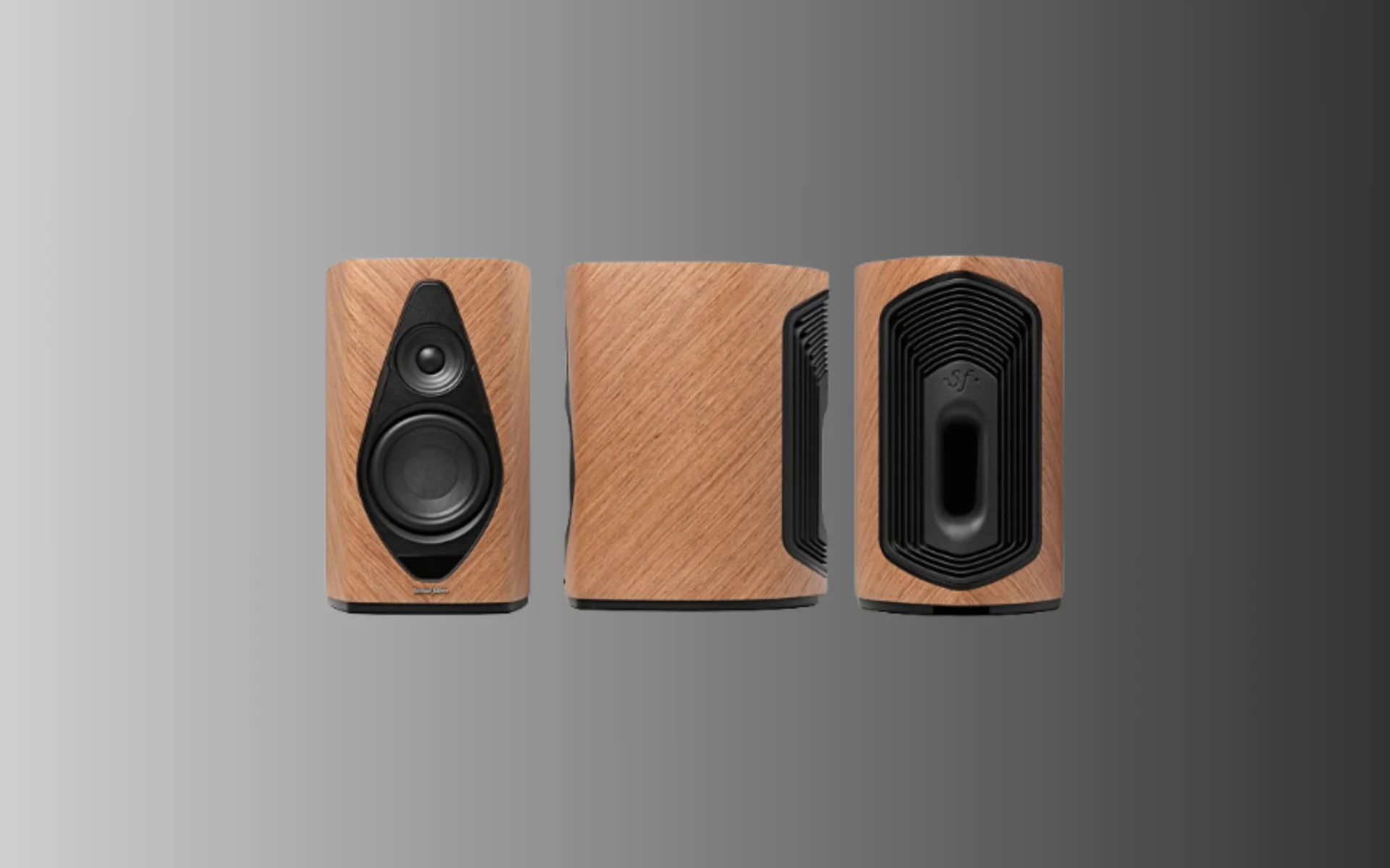 The audio system have the corporate’s trademark Lute-shaped picket cupboards, nonetheless the customized heatsinks on the again show these aren’t odd bookshelf audio system.