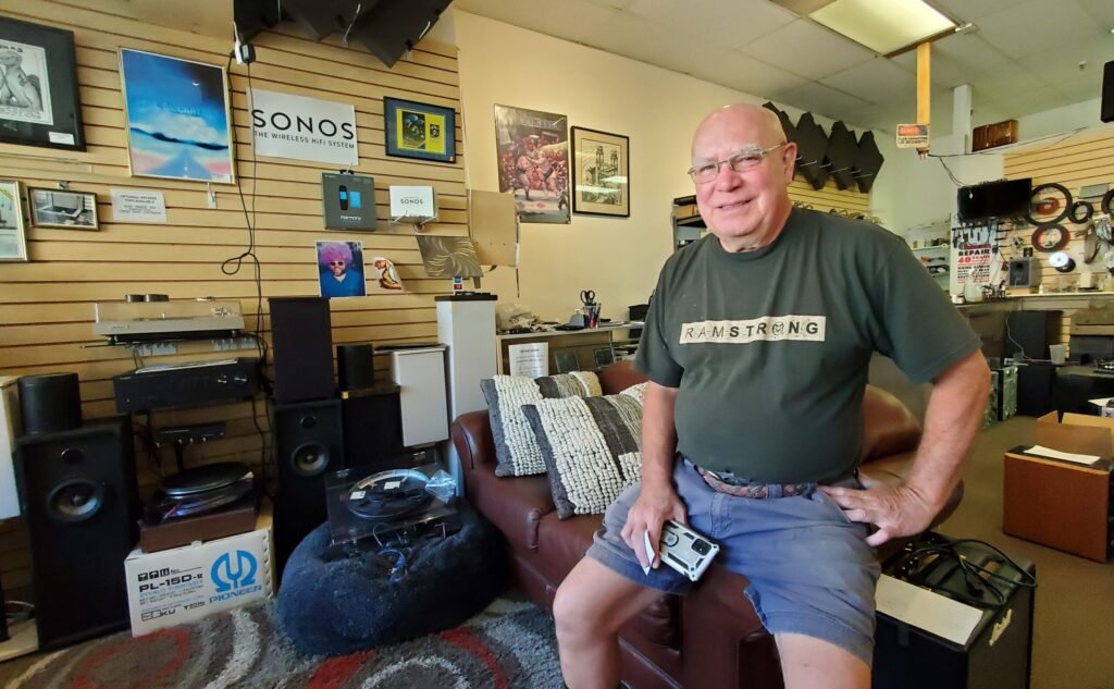 Nonetheless, “most of our enterprise is out of this retailer,” Harms mentioned. “A man got here yesterday visiting from Santa Barbara and mentioned ‘I’ve obtained some outdated JBLs from 1980. They’re fantastic. I don’t want new audio system.’ Inside seven minutes, he ordered a pair of audio system that I’m delivery to him as a result of he heard what ours gave the impression of and he mentioned, ‘You’re proper, your audio system sound so much higher.’ They’re smaller, so his spouse appreciated that, and so they seem like furnishings as a result of they’re coated with linen.”